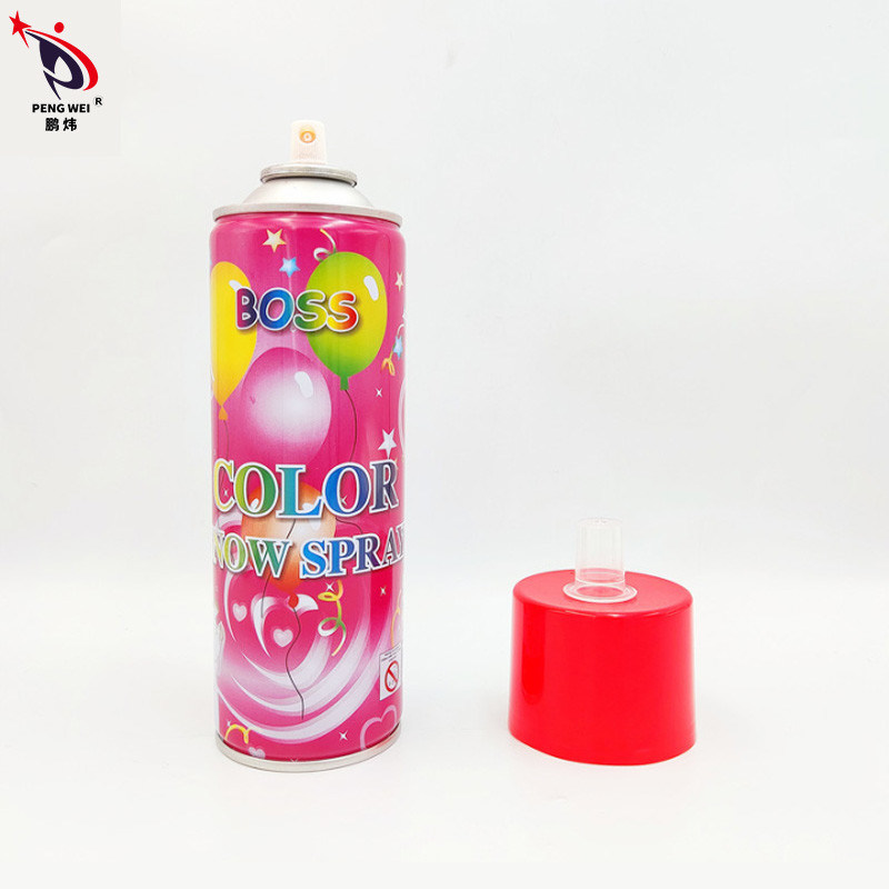 El espray de la nieve de Boss es popular en el mercado de la India u otros, que se pueden rociar continuamente y no hacen ningún daño a nuestra piel. El casquillo con color muestra el color del contenido de la nieve. Este espray falso de la nieve puede presentarnos una escena colorida si nosotros que la aplican para celebrar festivales.